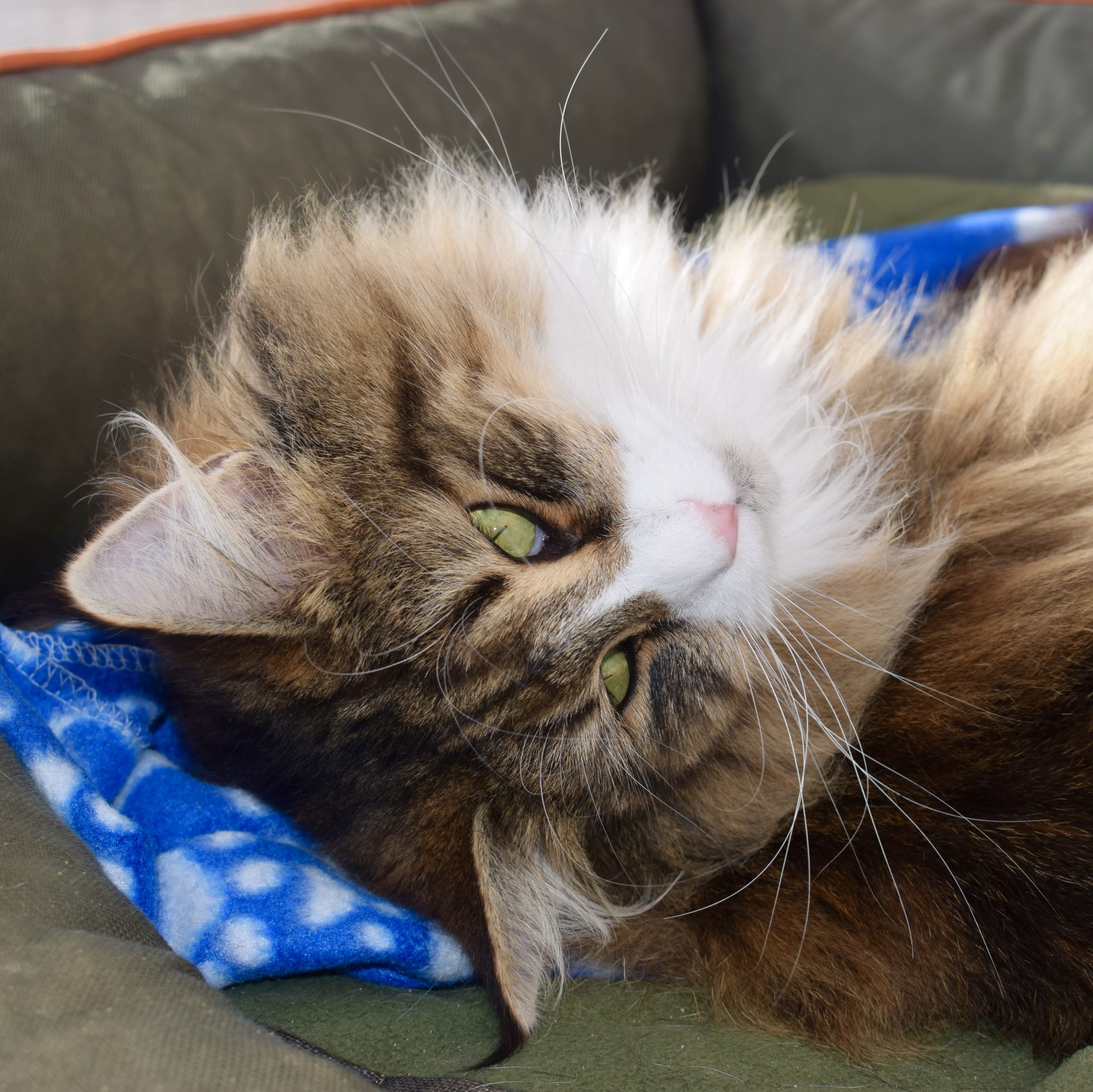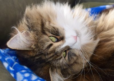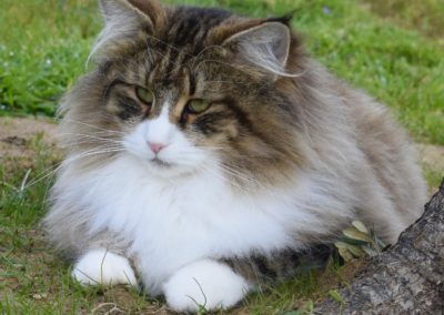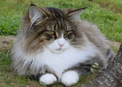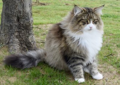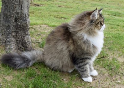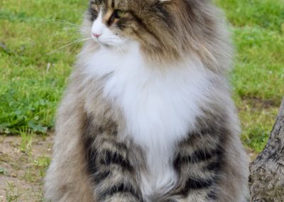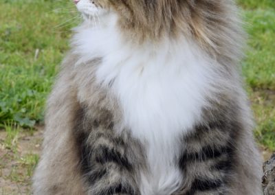 Alsi ich Xanny als kleines Kätzchen zum ersten Mal auf Sabrina’s FB sah, wusste ich, diese Katze gehört zu mir. Mit Xanny ging für mich ein weiterer Traum in Erfüllung. Xanny ist sehr liebevoll, unglaublich anhänglich etwas zurückhaltend zu Fremden, einfach eine wunderbare Gefährtin. Auf Ausstellungen bereitet sie mir nur Freude. Ihr Profil ist perfekt, sie ist eine grosse Katze mit starkem Knochenbau, ihr Fell von unglaublicher Qualität und ihr langer, wunderschöner Schwanz macht sie einfach einzigartig.